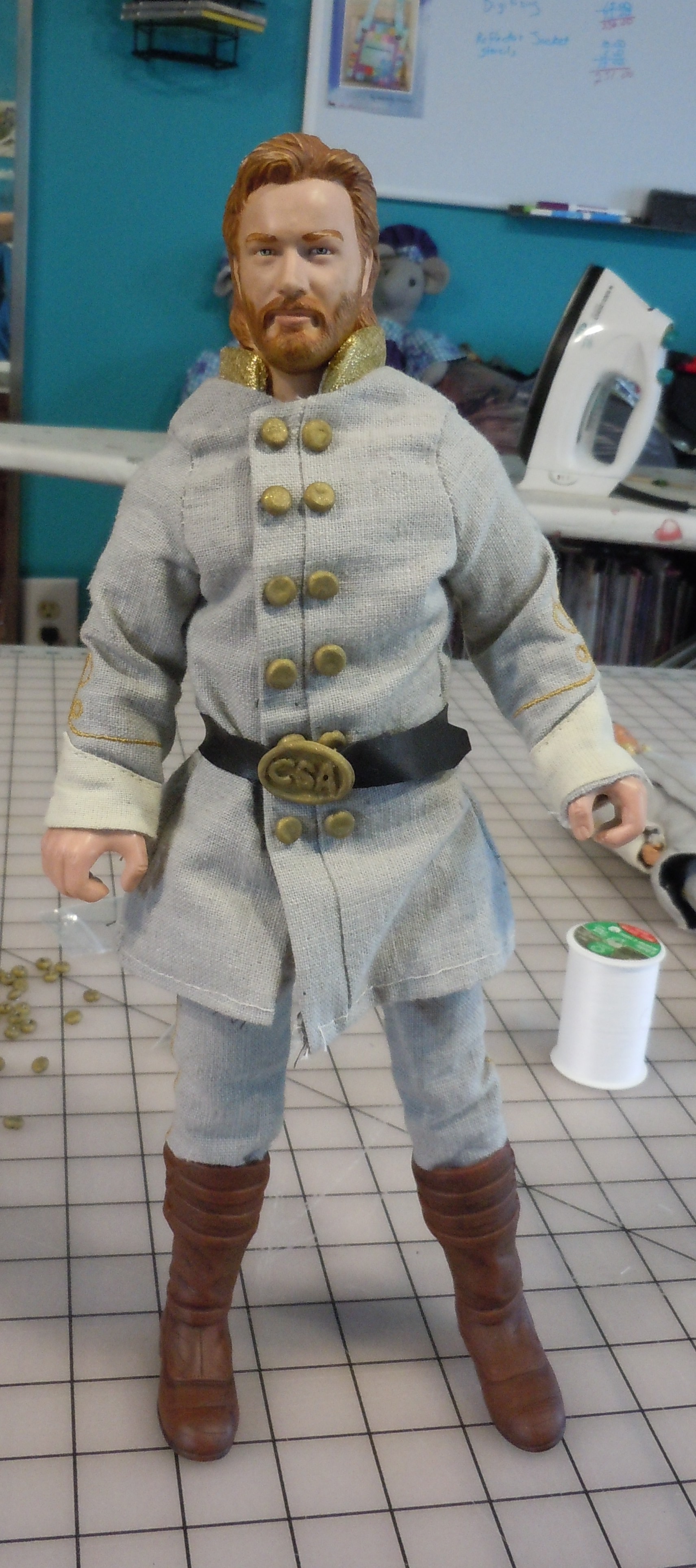 I love making doll clothes for civil war soldiers or any other dolls. I make my own patterns to scale, buttons, insignia’ s, and everything else that exemplifies the authentic look.